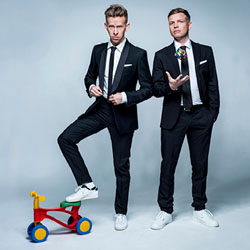 Jelle Cleymans en Jonas Van Geel kennen elkaar sinds hun twaalfde. Naast hun liefde voor acteren (oa. in de musicals 14’-18’ en 40’-45’), delen ze ook een passie voor muziek en entertainen. Wat ooit begon als een oudejaarsavondgrap groeide uit tot één van de vaste waarden op de Vlaamse podia. De twee creatieve tijgers spelen al meer dan 15 jaar het dak er af en zijn dat ook deze zomer in Middelkerke van plan.